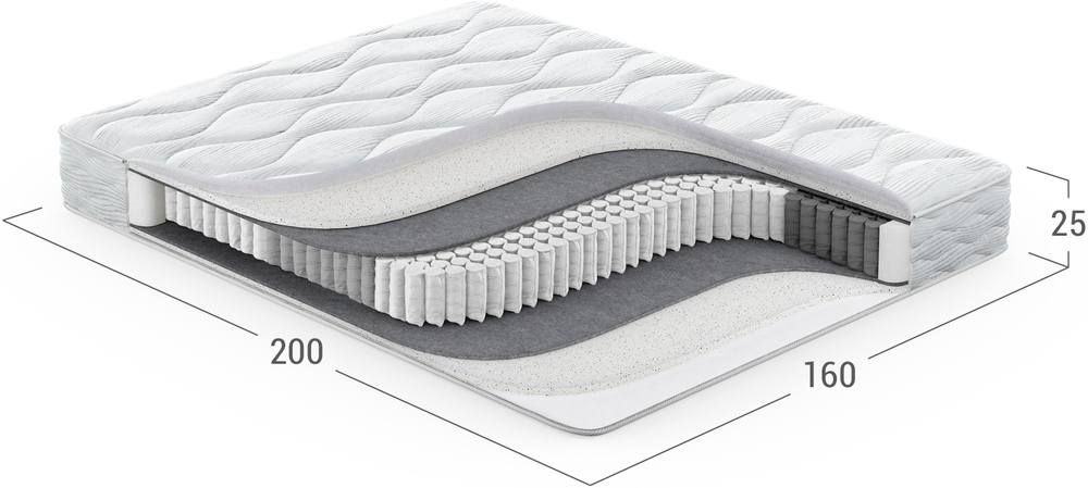 Повышает жесткость и плотность спального места, а также обеспечивает оптимальный воздухообмен благодаря объемной структуре материала. Улучшает эксплуатационные показатели матраса, не давая пружинному блоку механически воздействовать на комфортные слои.