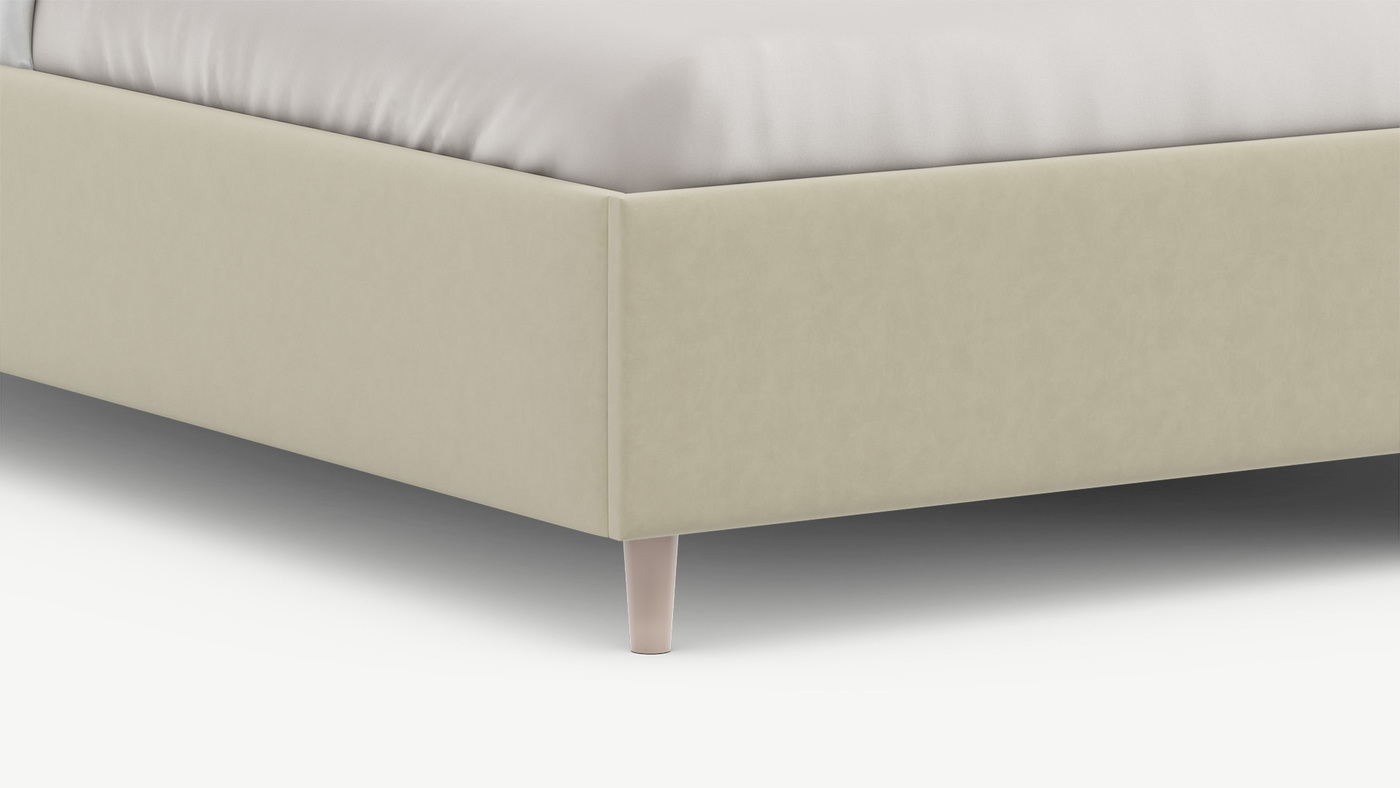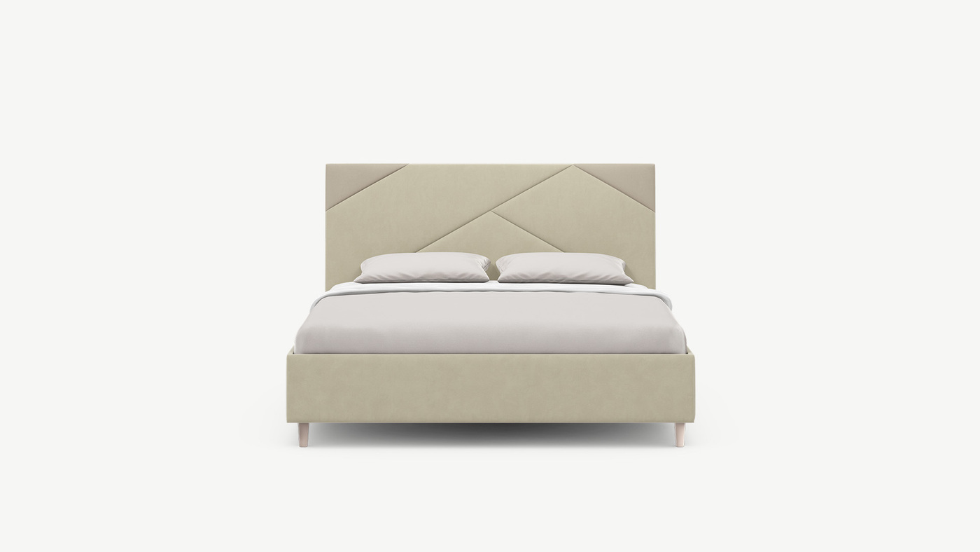 Элегантным и практичным акцентом служат скрытые карманы, расположенные по его углам. Лаконичные формы объемных царг создают единый гармоничный образ и фокусируют внимание на центральном текстурном элементе кровати.