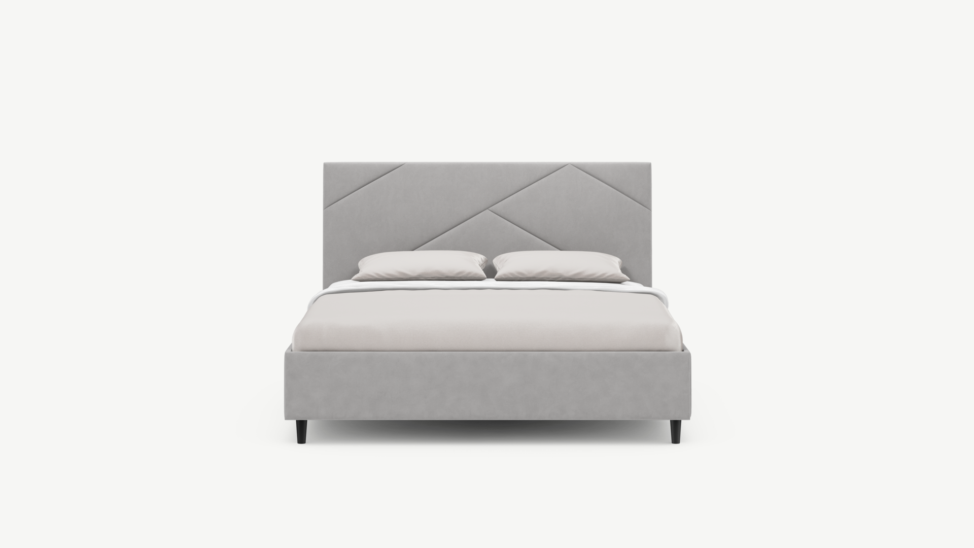 Элегантным и практичным акцентом служат скрытые карманы, расположенные по его углам. Лаконичные формы объемных царг создают единый гармоничный образ и фокусируют внимание на центральном текстурном элементе кровати.