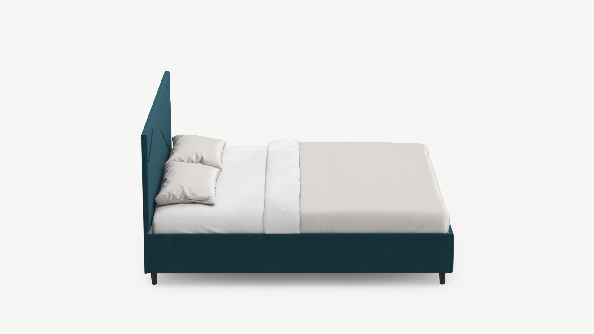 Элегантным и практичным акцентом служат скрытые карманы, расположенные по его углам. Лаконичные формы объемных царг создают единый гармоничный образ и фокусируют внимание на центральном текстурном элементе кровати.