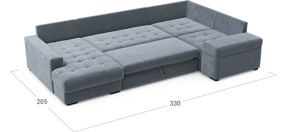 Секция «канапе» обеспечивает дополнительное пространство для отдыха, благодаря которому Вы можете располагаться с максимальным комфортом, удобно вытянув ноги. Под ней расположен вместительный бельевой короб.