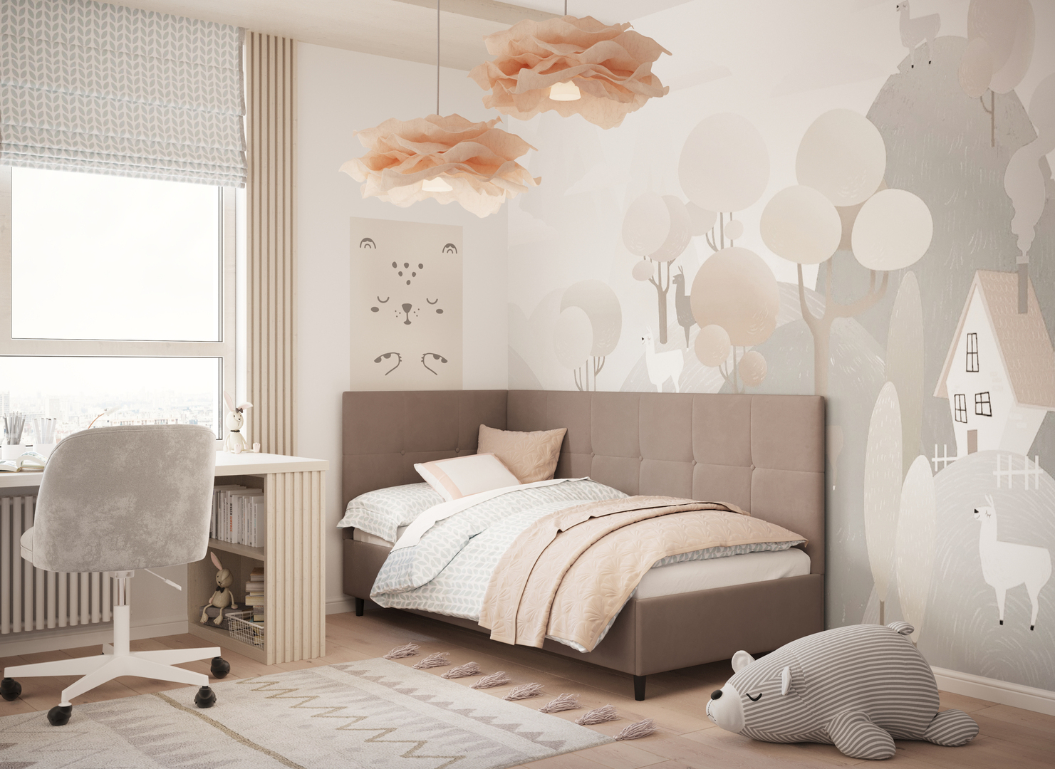 MOON FAMILY 1261 объединяет функциональность и стиль, создавая гармоничное пространство для отдыха и творчества. Кровать доступна в левостороннем и правостороннем исполнении, что позволяет легко адаптировать ее под любые интерьерные особенности.
