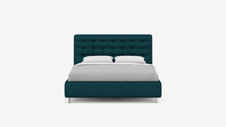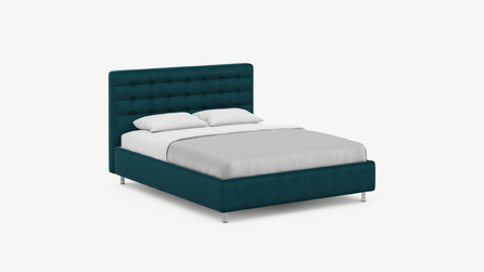 Заказали кровать с подушками-валиками, очень необычный дизайн нам показался. Выбрали высокие опоры для удобства в уборке, а изголовье не стали брать высокое, больше понравился низкий вариант. Приятно, что в магазине большой выбор тканей и цветов. Мы выбрали яркий бирюзовой, в нашей комнате кровать выглядит просто потрясающе! Кровать стала ярким акцентом. Это очень круто, что компания дает возможность сделать интерьер таким, как хочется. По качеству также нет претензий. Обита ровно, ни складок не, ни неровностей. Ламели ровные, матрас на них лежит идеально. Мы остались довольны, всем рекомендуем к покупке.