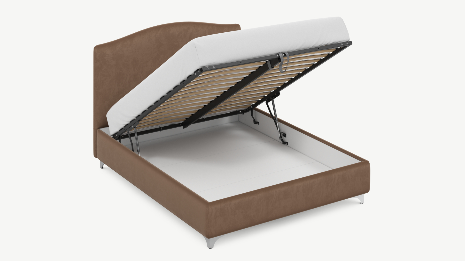 • Скрытая под основанием вместительная емкость без внутренних перегородок позволяет использовать всю площадь подкроватного пространства для хранения вещей.